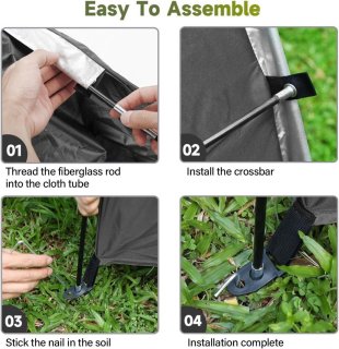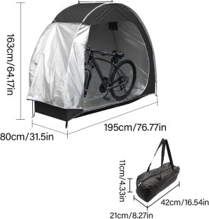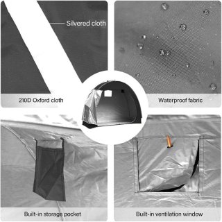 Dit robuuste opbergsysteem is vervaardigd uit duurzaam 210D Oxford-materiaal met een zilveren coating, waardoor het betrouwbaar waterdicht en UV-bestendig is. Het biedt langdurige bescherming tegen regen, stof en zonlicht en is daardoor ideaal voor het veilig opbergen van fietsen, motoren en tuingereedschap in de buitenlucht.