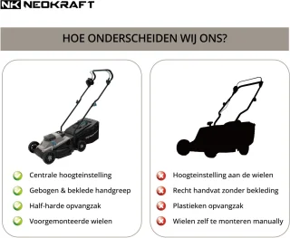 Kortom: wil je een betrouwbare, compacte grasmaaier die comfort en efficiëntie combineert voor kleine tuinen? De NeoKraft 1300W levert degelijke prestaties, eenvoudige bediening en een verzorgd eindresultaat — ideaal voor iedereen die zijn gazon snel en zonder gedoe wil onderhouden.